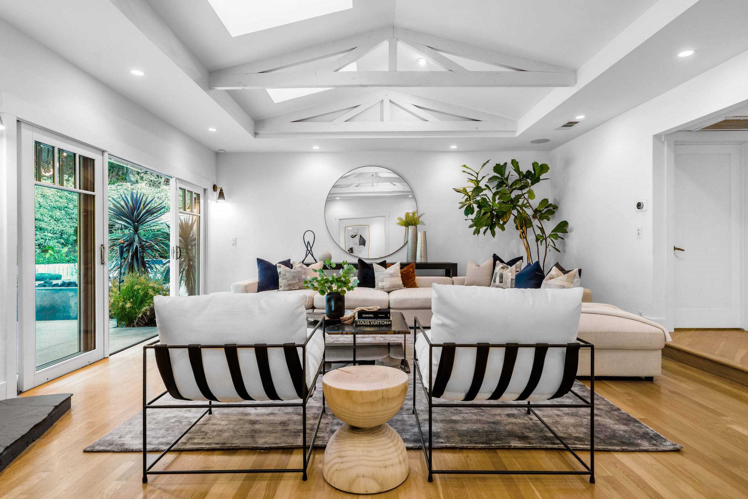 Sold for $2,600,000 - $205,000 over asking price. 3325 Alana Dr - This California Bungalow sitting on a quiet cul-de-sac in the hills of Sherman Oaks with contemporary upgrades features 4 bedrooms, 3 bathrooms, plenty of outdoor space to entertain, and views of the valley from a private jacuzzi deck. The spacious living room has a wood burning/gas fireplace, vaulted wood beamed ceilings with skylights, and french sliding doors leading to the backyard. Kitchen with breakfast nook and island recently renovated with brand new floors, countertops, stainless steel refrigerator, and sink. The large master suite includes french doors leading to a private deck + firepit and an intimate Roman bathtub with views to the outdoor garden. What we love most about this property is the private backyard with multiple areas to entertain including an outdoor dining area, kitchen with Viking BBQ + sink + refrigerator, water fountain, and grassy area where your kids and dogs can play. This California gem also has a media room, wine closet, zen outdoor shower, laundry room, and two car garage all sitting on a massive 30,558 sq ft lot. Ideally located within the Sherman Oaks Elementary Charter school district and minutes away from Beverly Hills, Brentwood, and the westside.